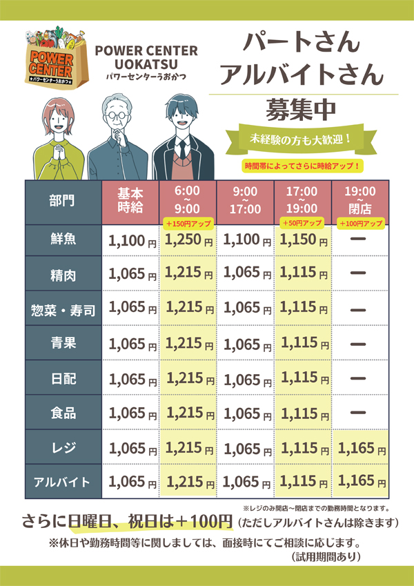 - パワーセンターうおかつ 榛名店、吉井店、安中店、群馬町店、 生鮮市場飯塚店、箕郷店